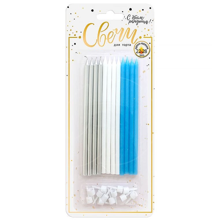 Доставка Свечи декоративные Бело-голубо-серебрянный микс 15 см 12 шт из магазина в вашем городе: