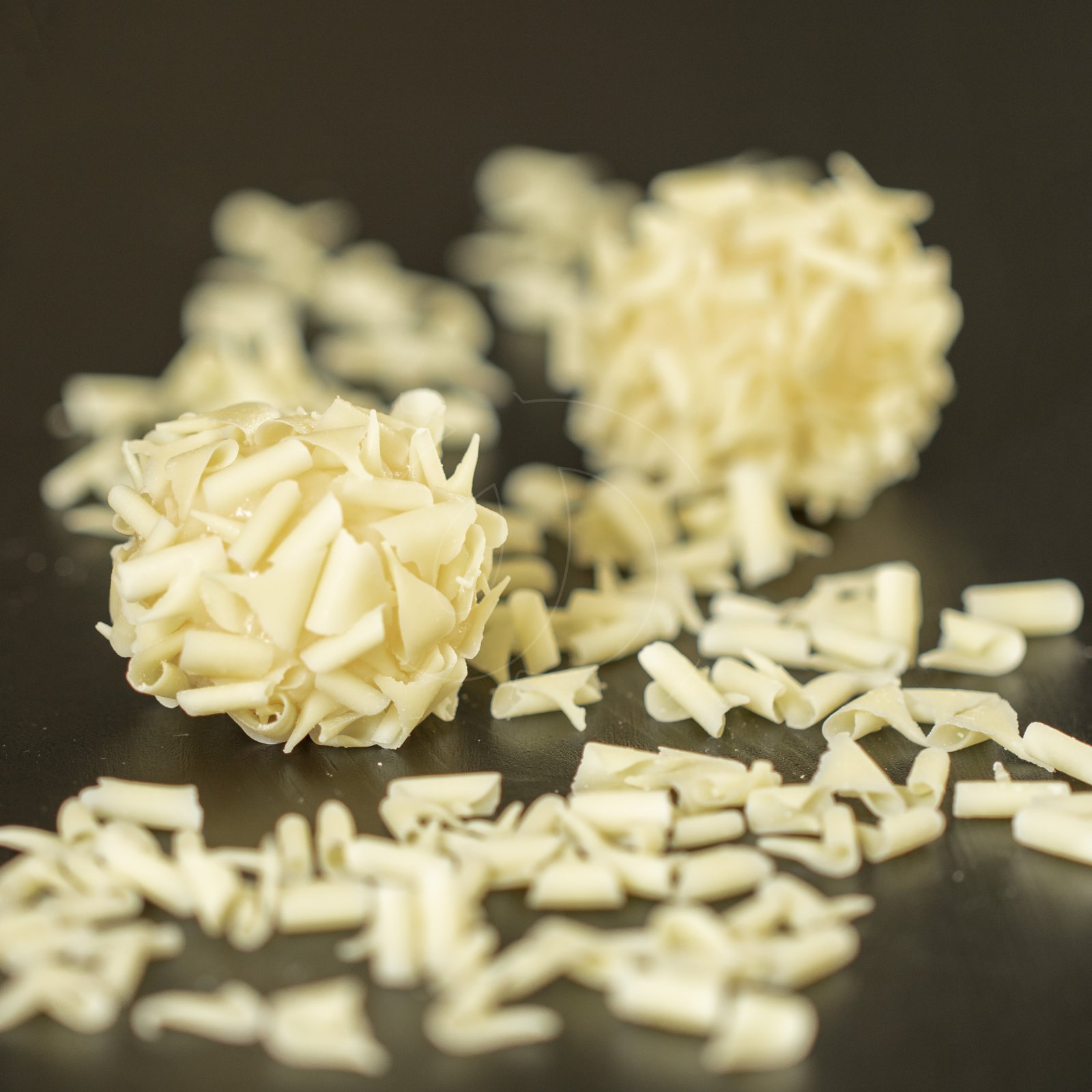 Шоколадная стружка сделана в виде хрупких завитков ручной работы из твердых блоков 100% Бельгийского шоколада Callebaut премиум класса.