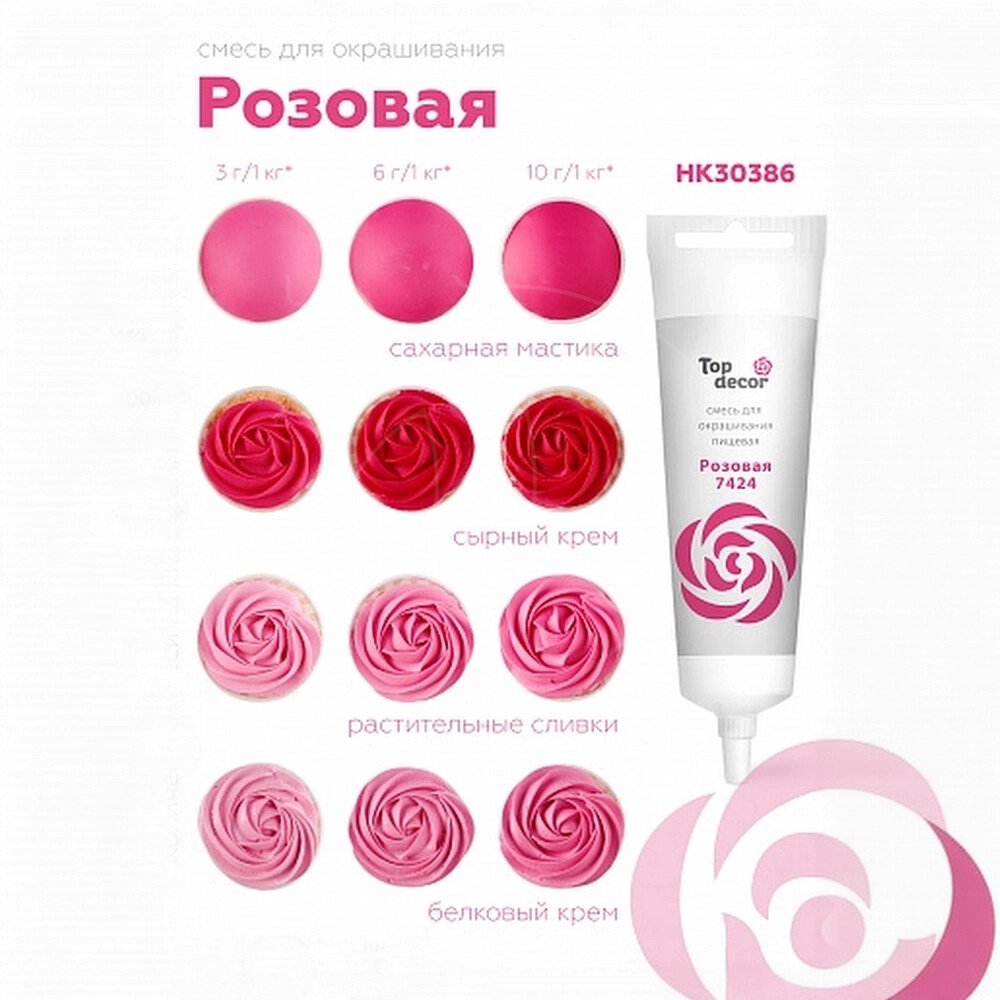 Доставка Краситель пищевой гелевый водорастворимый Top Decor "Розовый" 100 г из магазина в вашем городе: