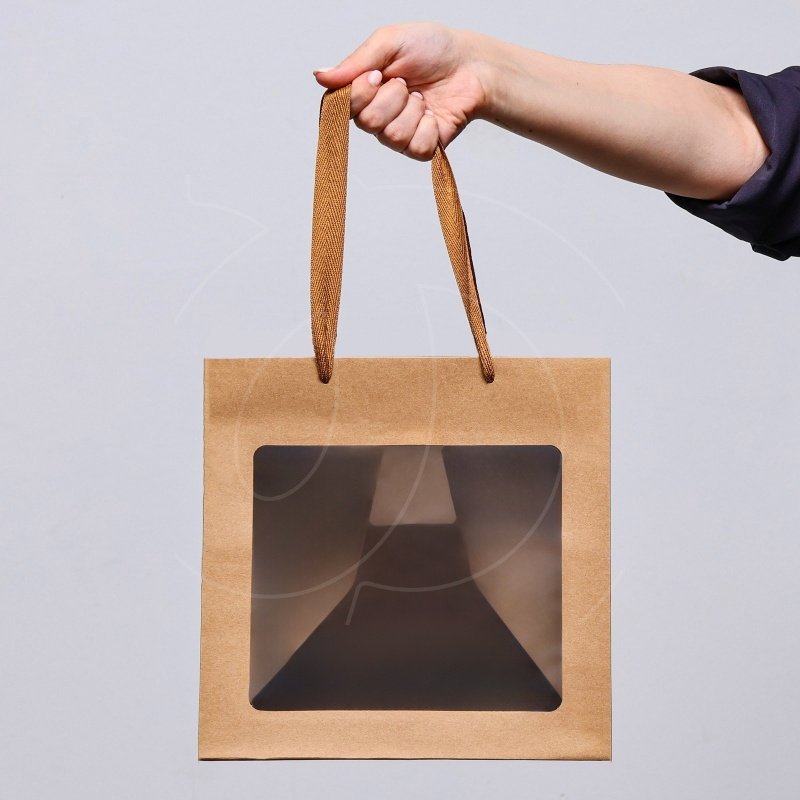 Прочное дно квадратной формы позволит поместить в пакет коробку с тортиком.