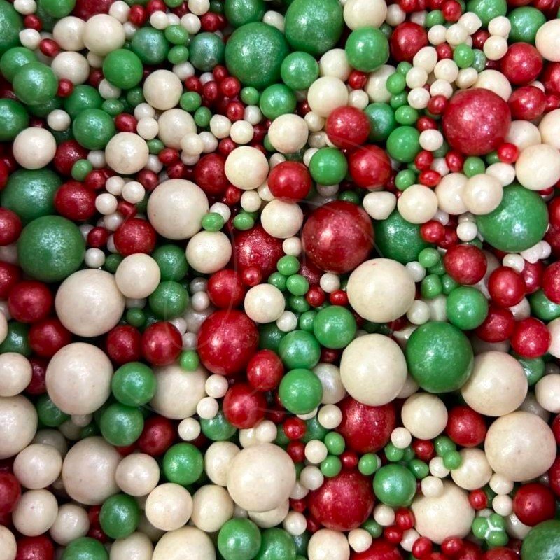 Посыпка кондитерская из дутого риса жемчуг "Бело-красно-зелёный микс" 50 г