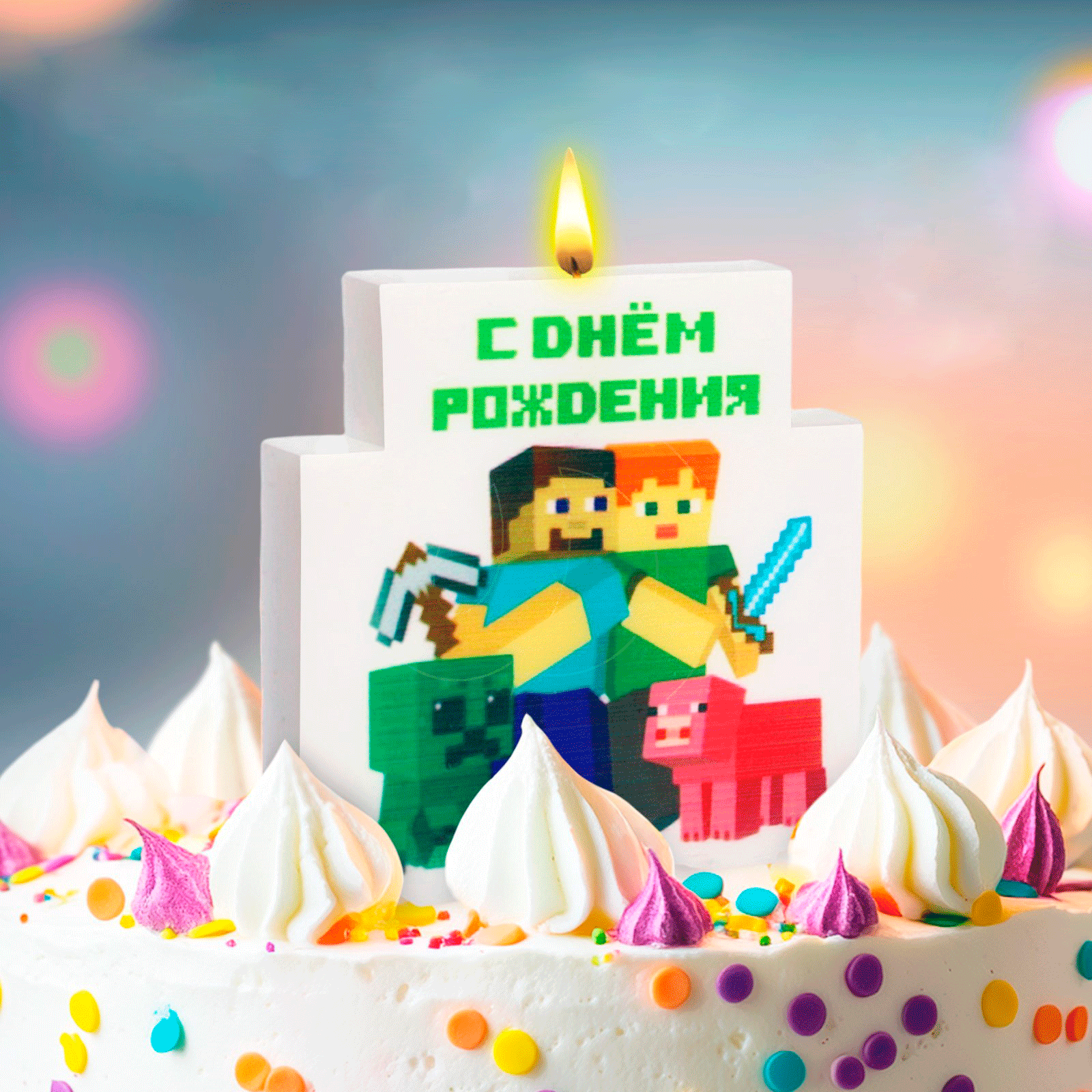 Доставка Свеча декоративная "С Днём Рождения!" 7,7х8,9 см из магазина в вашем городе: