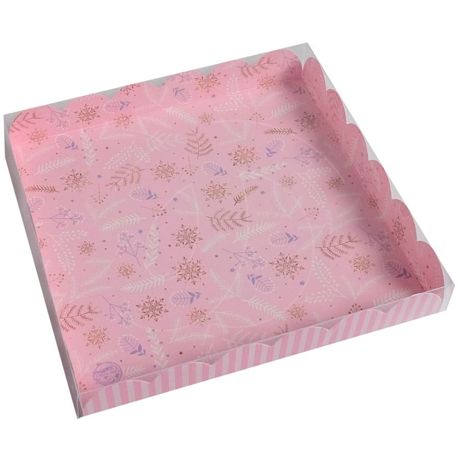 Доставка Коробка для печенья/конфет с прозрачной крышкой "С Новым Годом" розовая 21х21х3 см из магазина в вашем городе: